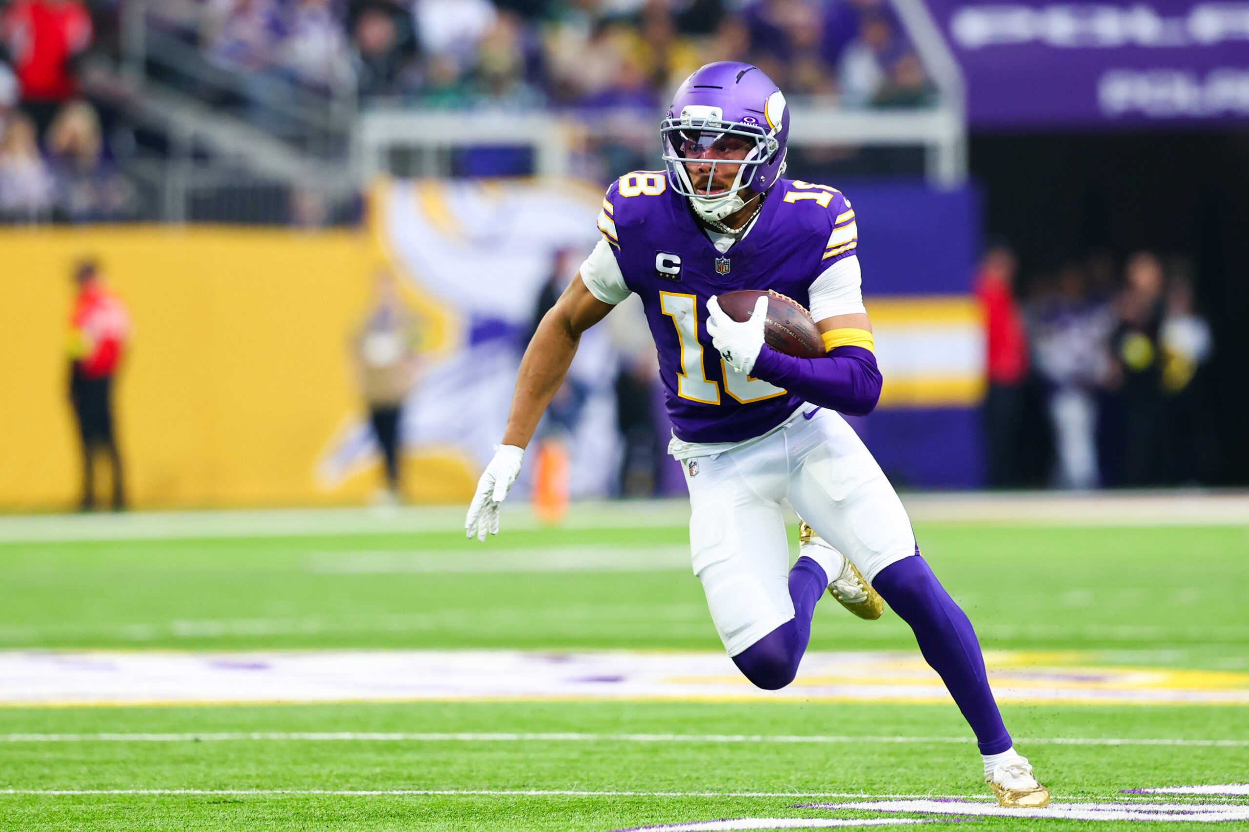 Most of McCarthy’s yards came on receptions by Justin Jefferson, who needed 53 receiving yards going into the game to reach 1,000 for the season, a feat he’d managed every year since entering the league. He was already up to 68 by the end of the first half, and a further 33 in the second helped him to his first 100-yard receiving game of the season on U.S. soil; his only other 100-yard performances of 2025 had come against the Steelers in Dublin and the Browns in London.